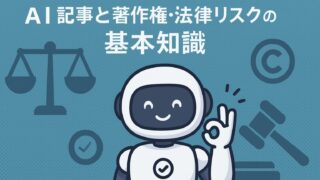 AI × SEO基礎知識 AI記事と著作権・法律リスクの基本知識 AI生成記事の著作権と法律リスクを初心者向けに整理。誰が権利者になり得るか、侵害や名誉毀損・情報漏洩などの主要リスク、セーフ/アウトなプロンプト設計、規約確認ポイントまで実務ガイド。 AI × SEO基礎知識